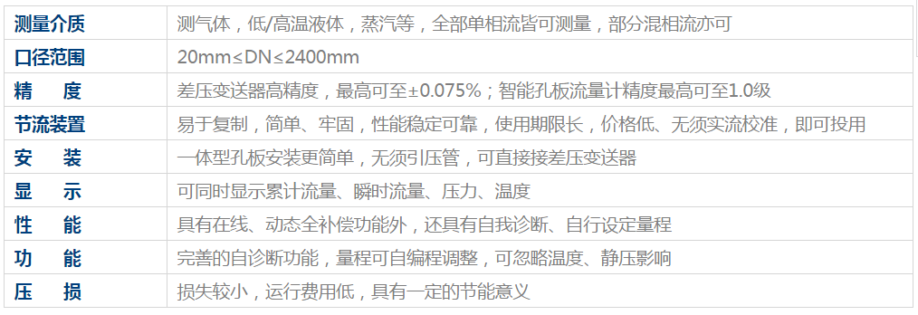 應用范圍廣,可適應大多數(shù)工藝介質(zhì)和工藝條件的流量測量,包括單相流體(液、氣、蒸汽)、部分混相流,一般生產(chǎn)過程的管徑、工作狀態(tài)(溫度、壓力)等的檢測;