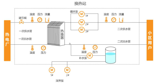 城市換熱站測控系統(tǒng)是通過對供熱系統(tǒng)的溫度、壓力、流量、開關(guān)量等進(jìn)行測量、控制及遠(yuǎn)傳,實(shí)現(xiàn)對供熱過程有效的遙測、遙感、遙控、遙調(diào)。城市換熱站測控系統(tǒng)是區(qū)域供熱系統(tǒng)中的重要組成部分,它將實(shí)時、全面了解供熱系統(tǒng)的運(yùn)行工況,監(jiān)測不利工況點(diǎn)的壓差,保證區(qū)域供熱系統(tǒng)安全合理地運(yùn)行,并可根據(jù)運(yùn)行數(shù)據(jù)進(jìn)行供熱規(guī)劃和科學(xué)調(diào)配,為熱力部門提供準(zhǔn)確、有效的重要數(shù)據(jù)。