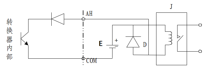 若外部定量控制電路采用圖3所示的方式,可使用繼電器的常開節(jié)點。定量未到時,內部晶體管截至,線圈不通電,節(jié)點斷開;若定量值到達時,內部晶體管導通,線圈通電,節(jié)點閉合。