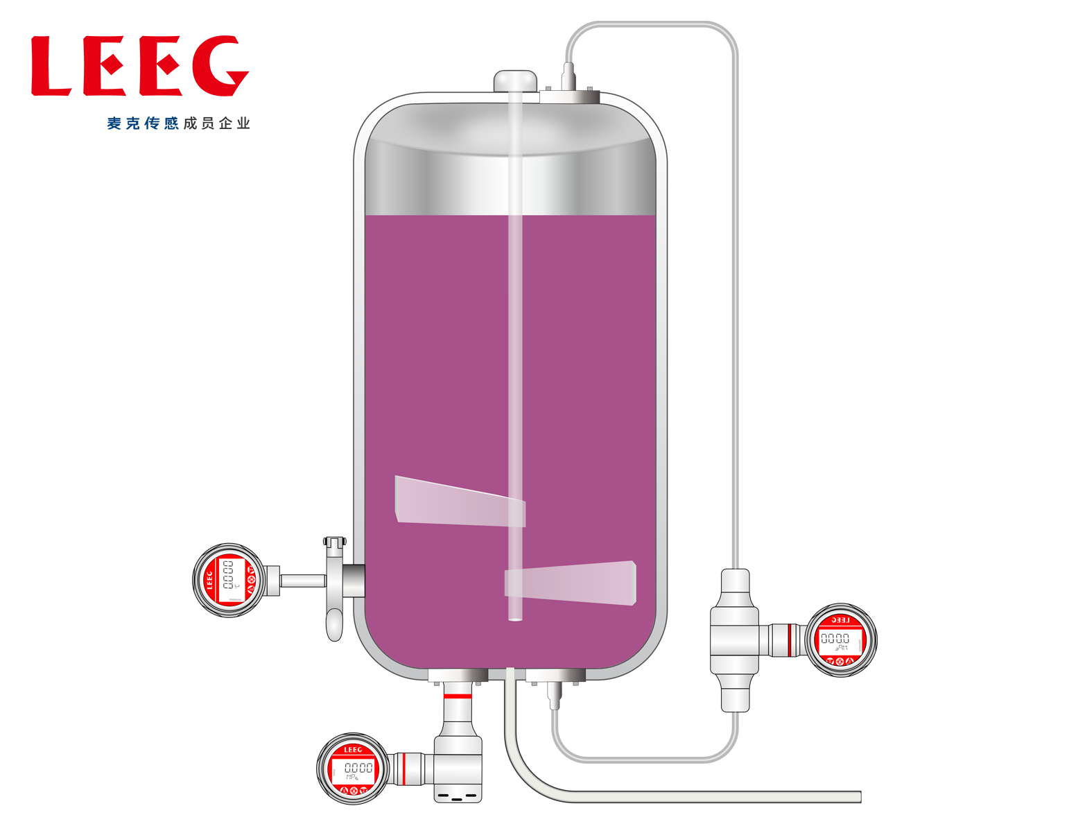 配液罐要為后續(xù)生產(chǎn)預(yù)備不同的溶劑和基本材料,不論是配制針劑、溶液劑、洗劑,需要配比不同的純凈水、注射水、蔗糖水溶液、懸濁液等。通過測量液位來控制灌裝和取用過程,不同進(jìn)罐溶液管道需要測量壓力,通過測量來防范儲罐發(fā)生溢流或空轉(zhuǎn)。