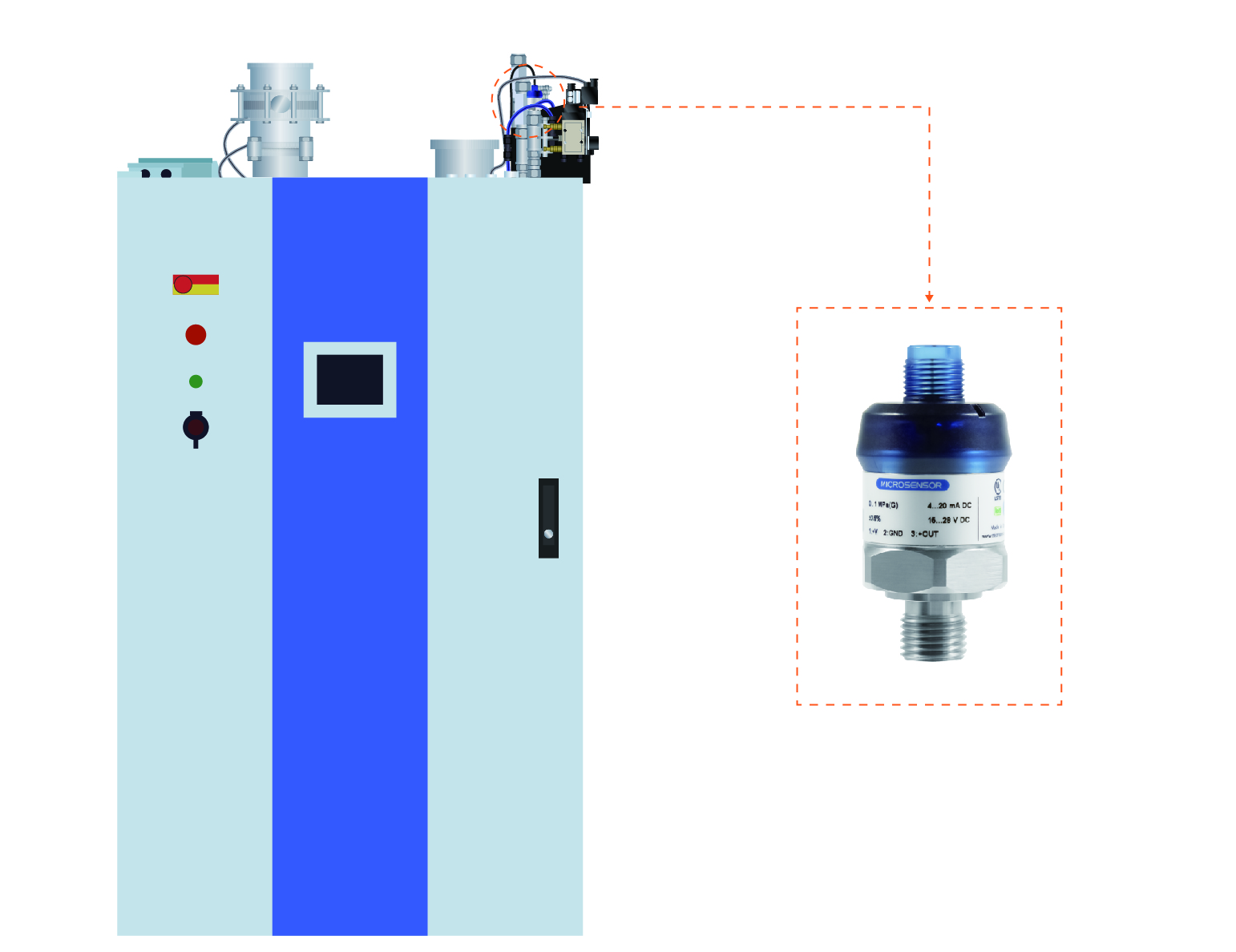 等離子清洗機中的等離子體是物質(zhì)的一種存在狀態(tài),其通常為工藝氣體,因此要在等離子清洗系統(tǒng)的相關(guān)氣路,加裝特制的壓力變送器用以監(jiān)測并反饋相關(guān)生產(chǎn)數(shù)據(jù)。